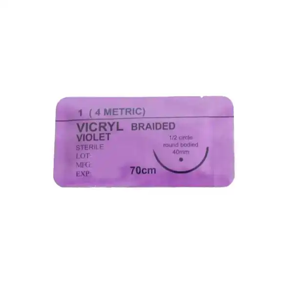 مصنوع من مادة **Polyglactin 910** التي تذوب تدريجيًا داخل الجسم دون الحاجة إلى إزالتها.
